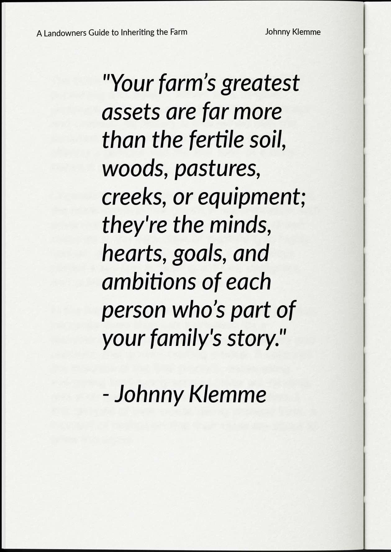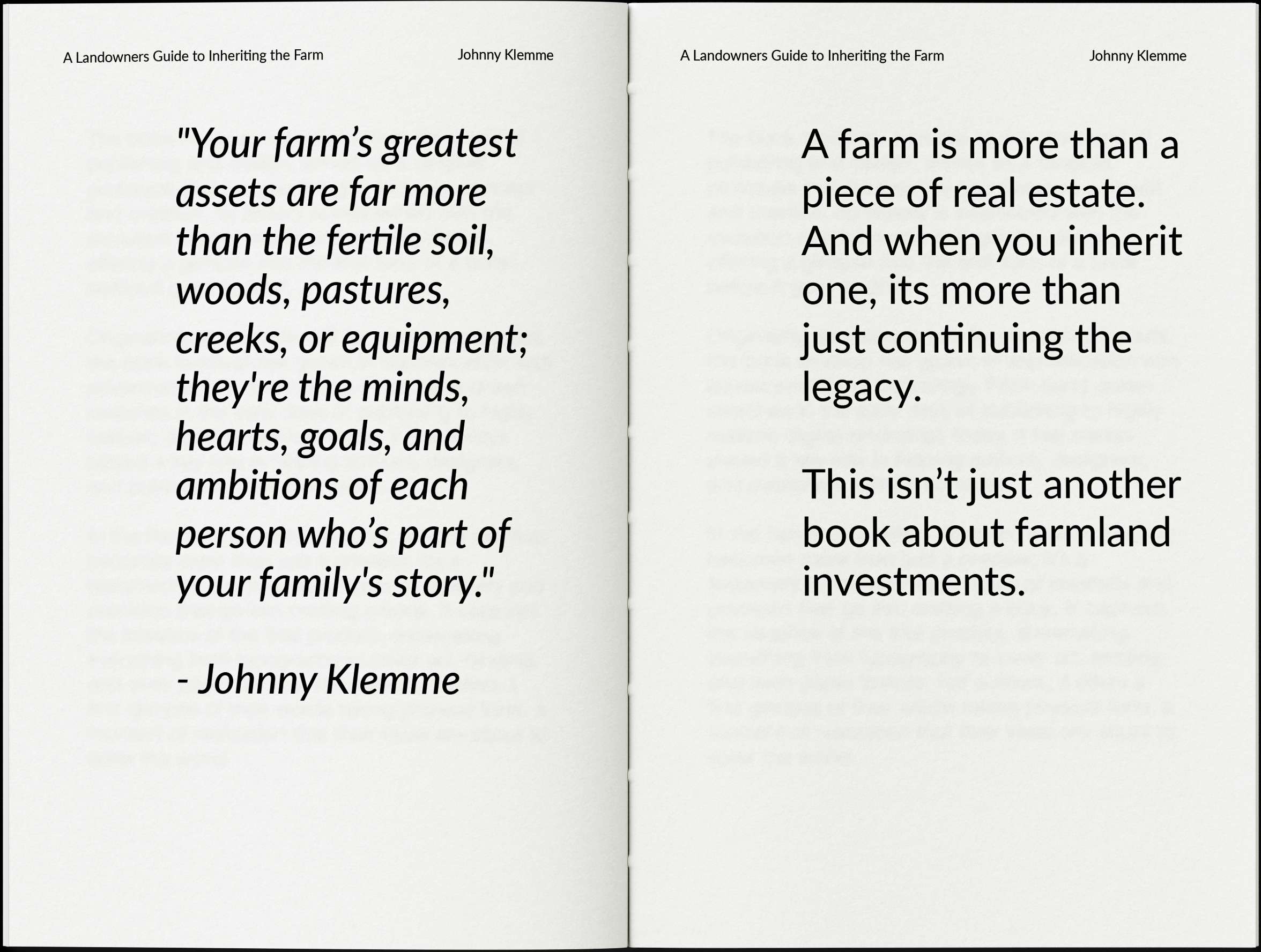 A farm is more than a piece of real estate. Inheriting one isn’t just about carrying on a legacy; it’s about making choices that will shape your future. American Family Farmland by Johnny Klemme, is the first book of its kind created specifically for those who have inherited, or plan to pass down, the family farm — offering guidance, stories, and strategies to navigate this once-in-a-lifetime responsibility with clarity and confidence.